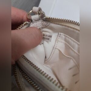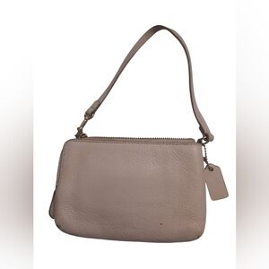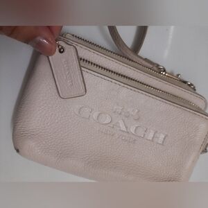 Chic Coach wristlet in smooth leather. Perfect for versatile styling. Compact and elegant design.