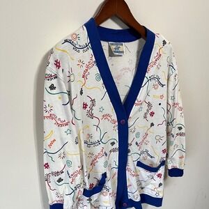 Vintage Beverly Hills Polo Club Cardigan Womens M Colorful Graphic Sweater Prep