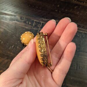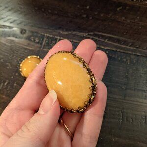 - lovely butterscotch-yellow resin jewelry set with brooch and clip on earrings!