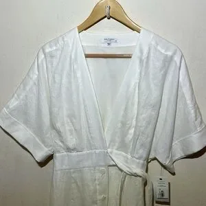 Equipment Femme White Linen Nauman Dress Size 10 NWT