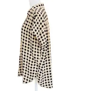 LOFT Outlet Button front Black and Tan Check Camp style Blouse size L