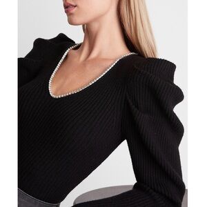 NWT Express Embellished V-Neck Puff Sleeve Sweater