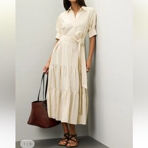 Marissa Webb Collective Tie Waist Linen Midi Dress women size 14 EUC RtR