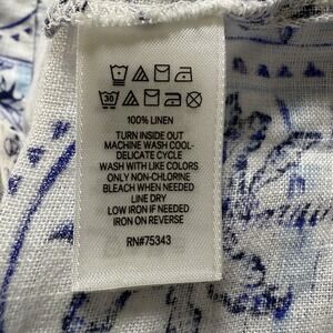 C&C California 100% Linen Blouse 2X Blue White Tile Beachy Coastal Key West Top