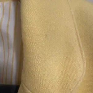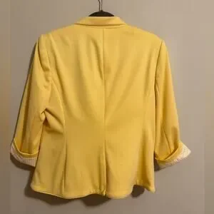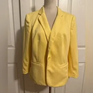 Vibrant yellow jacket from The Limited features 1 button closure and 2 pockets on front. Lining is white with yellow stripes - adds a bit of fun when sleeves are rolled. Size Large.