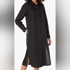 Nwt 100% Linen Elegant Black Shirt Dress