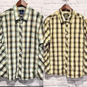 Lot Of 2 PrAna Mens Breathe Pearl Snap Plaid Button Up Short Sleeve Shirt Sz XL