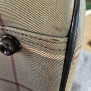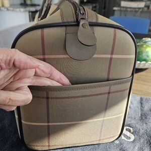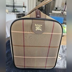 This Burberrys bundle comes with travel bag with dusty and wool scarf! Excellent vintage pieces!! Only call out is 2 minor small scuffs on 2 of bottom corners. Scarf is 100% wool and 48x28.