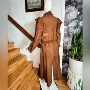 Free People x Brenda Knight NIGEL PRESTON Long Ruffle English Coat - Rust