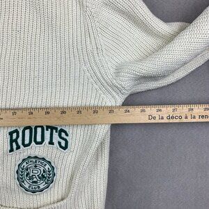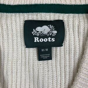 Roots Mens Sweater Medium Oversized White Cardigan Organic Varsity Embroidered