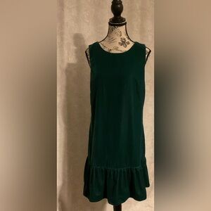 J. Crew Holiday Drop Waist Tunic Style Dress 8 Dark Green Plush Velvet