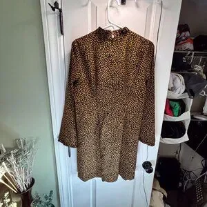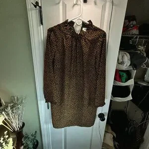 EUC J. Crew Factory Women's Size 6 Gold Dotted Black Dress Animal print