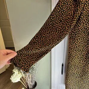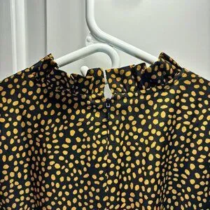 J.Crew Factory long-sleeve dress in the black and gold dotted print.