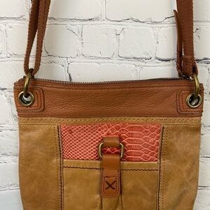 The Sak Crossbody Purse Bag Tan Leather Embossed Snakeskin