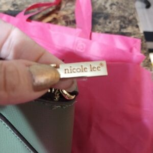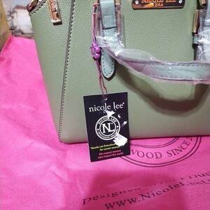 Chic and stylish, this Nicole Lee handbag in green is perfect for any occasion. Its elegant design and quality craftsmanship make it a must-have accessory. Beautiful green vegan leather, with gold hardware. Bag measures: 8 inches tall, 10 inches long and 4 inches wide. NWT! in perfect condition! Comes with crossbody strap.