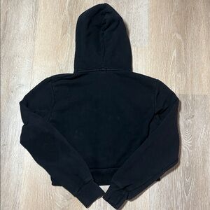 John Galt by Brandy Melville black zip-up hoodie. Classic Brandy fit, soft cotton blend, and the popular cropped/boxy style. One Size. Preowned, normal wash wear. A great everyday basic.