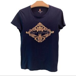 Juicy Couture Short Sleeve Tee Shirt with Goldfoil embellishments and Rhinestone logo