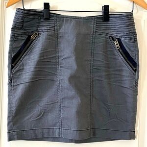 EUC excellent condition & quality by Armani Exchange designer. Mini skirt. Charcoal. Distressed. Cotton, polyester and spandex blend. Side ruching and zipper pockets. Back zipper. Measurements in photos. Women’s size 0. Smoke free home.