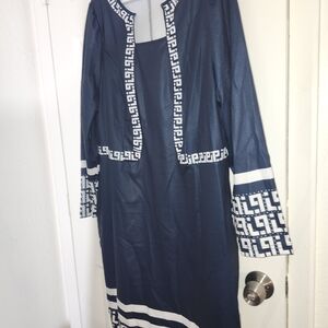 Navy Blue and Whitre Geometic Patterned Plus Size Dress 4X