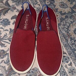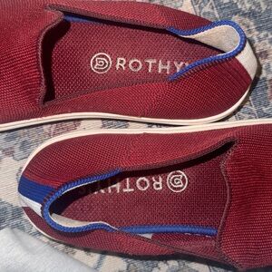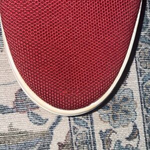 Stylish burgundy loafers with blue accents. Comfortable slip-on design. Perfect for casual wear. Made from recycled water bottles!