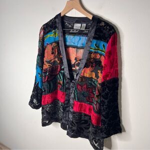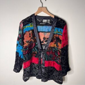 Chicos crushed velvet bohemian burn out patchwork cardigan jacket medium Silk