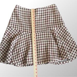 Anthropologie Maeve Bobbie pink plaid flounced mini skirt in size 6 for sale. Skirt is in excellent used condition with no stains, tears or holes. Please see measurements in photos.