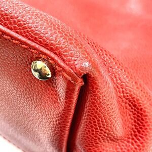 CHANEL Vintage Red Caviar Leather Logo Tote Bag