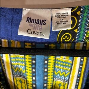 La Cera Womens Abstract Print Kimono Style STRETCH Boho Mediterranean Shirt/Tunic Top 3/4 Sleeve Round Neck ELASTIC Waist. One Size Fits Most Women. Perfect clean preowned condtion. No flaws. Smoke free home.