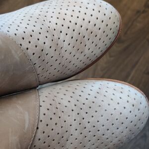 Genuine leather. Perforated design. Side zip.