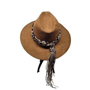 Vintage La Sierra Suede Western Cowboy Hat Camel Brown Aztec Tapestry Band Boho
