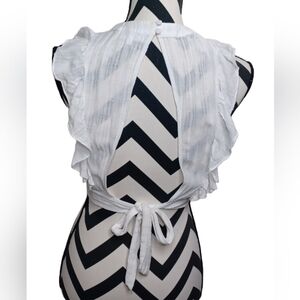 About Us Beachy Resort Summer Ruffled Dainty Feminine Open Back Crop Top