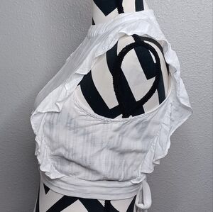 About Us Beachy Resort Summer Ruffled Dainty Feminine Crop Top.
