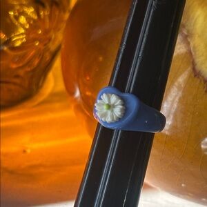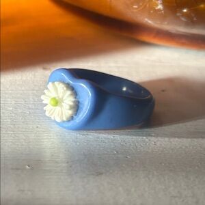 Stylish blue plastic ring featuring a white daisy flower accent. Perfect for adding a touch of nature. Size 8.5. Measurements and all sides shown in photos. In excellent condition. Smoke free home.