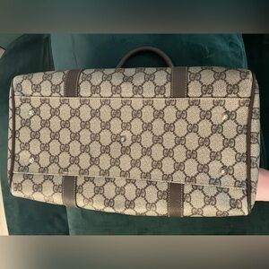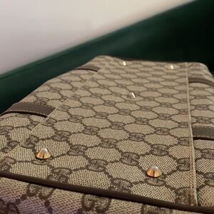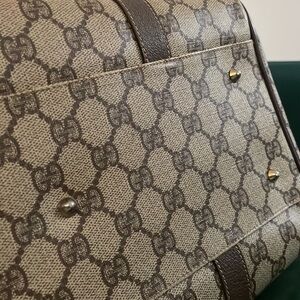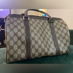 Certificate of Authenticity from Authentic Detective. 12.5"x8”x7” Always happy to consider reasonable offers! Just note Poshmark does take 20% of earnings, so I price to still make a small profit so I can afford my coffee habit 😉. Bag is from the 1980s with normal signs of wear on inside and handles as pictured. Smooth zipper. The bag is incredibly sturdy and holds it’s shape. Double rolled leather handles, zippered top, green and red web stripe. Interior has a few light marks but clean otherwise. Bag also has 5 feet on the bottom to protect it when placed down. Both handles reinforced by Kaner’s in Yorkville as per Gucci's suggestion (timely if done by Gucci). Comes from smoke-free home. Any questions? Leave a comment! ✨ New to Poshmark? Sign up with code NKWARREN for $15 off your first purchase! ✨ opulence, statement, curated, stylish, practical, vintage,, work, casual, marmont, dionysus, soho disco, jackie 1961, ophidia, horsebit, gold hardware, zip, spacious, compact, classic, timeless, chic, trendy, collector, monogram, GG, double G, Italian, Luxury designer, Gucci, speedy bag, monogram canvas, iconic design, vintage Gucci, timeless style, top handle, zip closure, gold hardware, leather trim, high-end fashion, Italian craftsmanship, classic handbag, statement piece, versatile accessory, collectible, pre-loved, excellent condition, chic, sophisticated, everyday bag, investment piece, rare find, genuine leather, premium quality, lightweight, authentic luxury