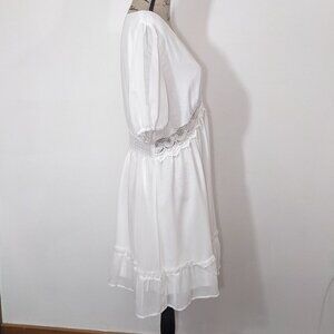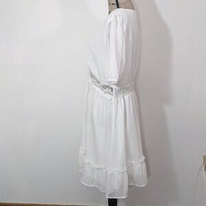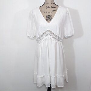 NEW CUPSHE Royalty Bubble Sleeve Lace Trims Mini Dress Short White XL