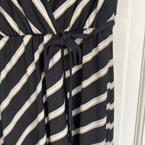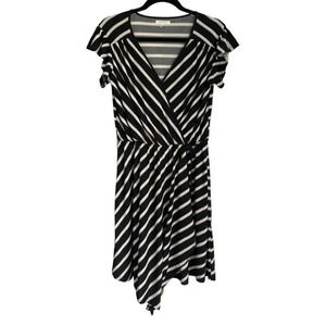Maurices Stripe Flutter Sleeve Wrap Dress V-Neck Black White Tan Gray Size S