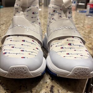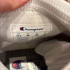 Stylish sneakers with Champion logo print. Comfortable Men’s 12 brand new. Has some blemishes. Never worn. Please see all pics