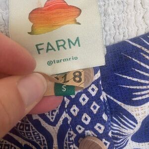 Chic FARM Rio jumpsuit with vibrant floral design. Features buttoned front and waist tie. Ideal for stylish outings. Has pockets. Size Small.