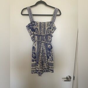 FARM Rio Blue and White Floral Jumpsuit - Size S
