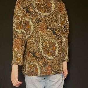 Vintage jewel toned paisley mesh three quarter sleeve top