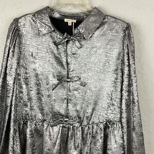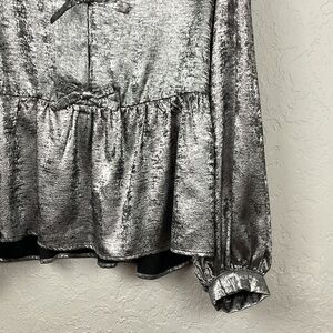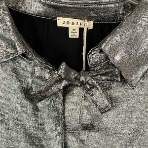 NWT Jodifl Black Silver Metallic Bow Long Sleeve Blouse Sz Medium