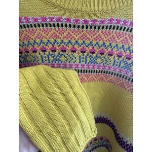 Easel Women's Mustard Yellow Fair Isle Knit Sweater Size Small