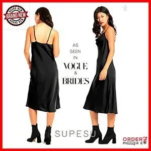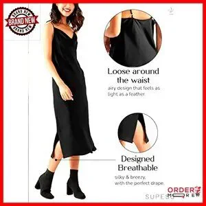 Satin Midi Slip Dress Silky Cowl Neck Adjustable Straps Elegant Formal Wear