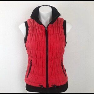 Calvin Klein Tom Puffer red vest with black trim and zipper. Side zipper pockets. Has a lot of stretch in addition to the pit to pit measurement. Like new pre-owned condition. Size S