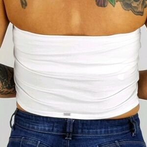 PINK by VS Crop Bandeau Top Size Medium White Red Stripes