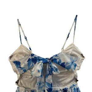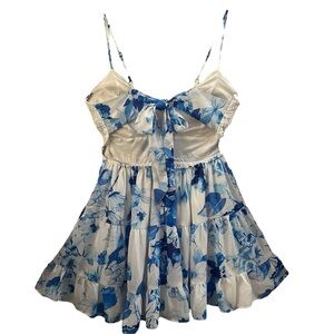CHICWAYS DRESS, Size L, White & Blue V-Neck Y2K Babydoll Tiered Flowy Dress, NEW