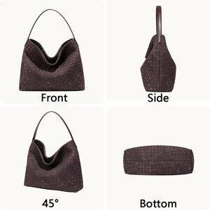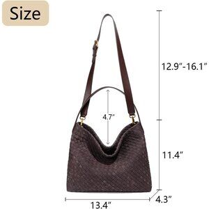 Features: This slouchy, retro top handle tote is crafted from high-quality faux suede with a beautifully woven design that adds a touch of luxury. The roomy interior features one main pocket, an inner zipper pocket, and an additional slip pocket—perfect for organizing your essentials like phone, keys, cosmetics, and more. Comes with a cute top handle and a removable long strap, letting you switch between handbag, shoulder bag, or crossbody style easily.