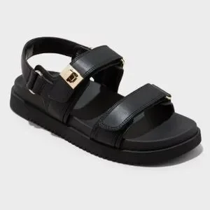 A New Day Black Sandals with Gold Details