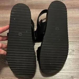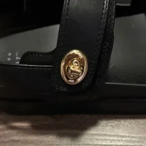 Elegant black sandals with striking gold hardware. Ideal for versatile wear. Worn once.