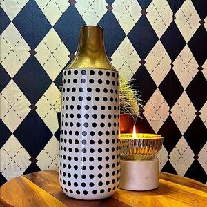 bold graphic design, modernist home accessory, black and white decor, monochrome styling, designer-inspired vase, sculptural home object, timeless palette, elevated neutrals, luxury minimalism, intentional decor, crisp contrast, interior designer pick, striking yet simple, gallery-style home piece, black dot pattern, curated shelf styling, modern glam, classic with an edge, fashion-forward home accents, cute black and white vase, trendy home decor, polka dot design, fun room accent, gold and white vase, cool ceramic find, stylish home gift, shelfie decor, apartment must-have, modern centerpiece, table vase, neutral room style, black and gold combo, cute flower vase, easy home upgrade, perfect for entry table, boho glam decor, pretty home stuff